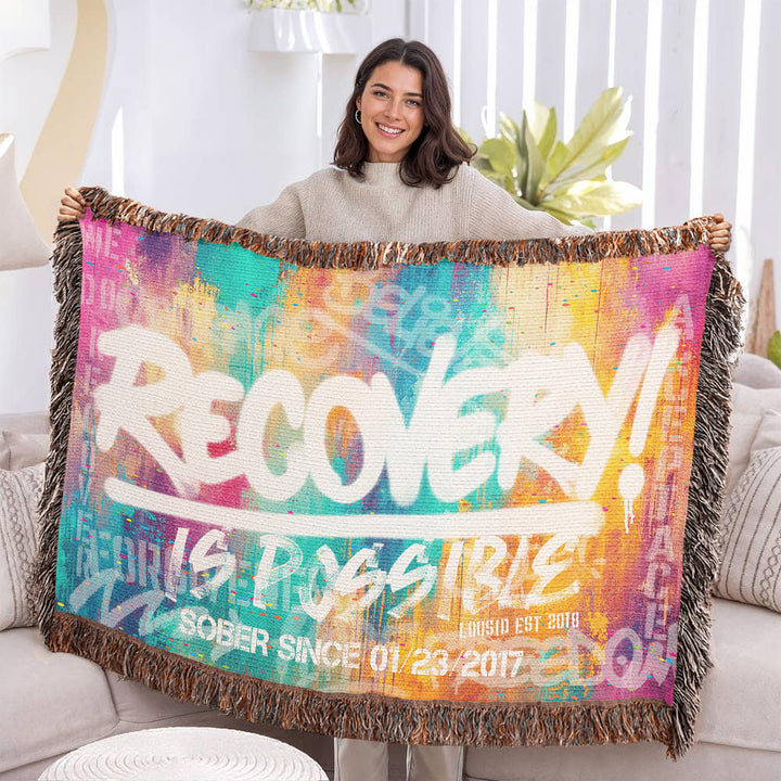 Recovery Is Possible Woven Blanket w/ Personalized Sobriety Date