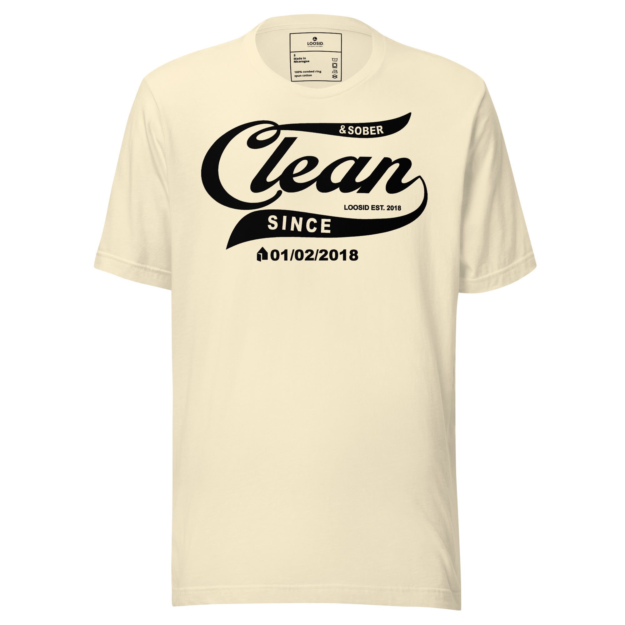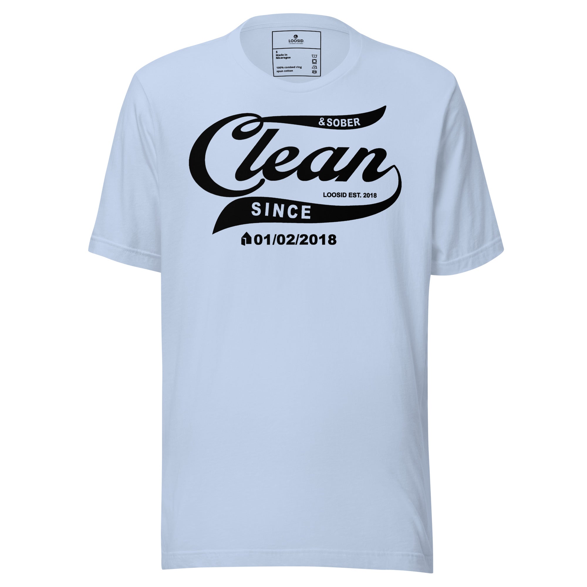 Showcase your sobriety milestone proudly with the Loosid Clean & Sober Unisex T-Shirt with your personalized sobriety date. This personalized Loosid t-shirt lets you showcase your sobriety milestone proudly and uniquely. Made with premium, ultra-soft fabric, this t-shirt is designed for comfort and durability, whether you're lounging at home or out with friends.